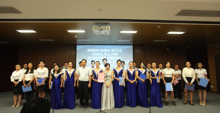 最后,由本次峰會會務組與天津區(qū)的干部聯(lián)袂合唱《新能源之歌》,首次隆重推出這首即將唱響新能源行業(yè)、唱響無錫、唱響全國的歌曲。這首歌曲由趙振元同志作詞,著名作曲家彭濤作曲,反應了新能源建設者對新能源這項造福子孫后代的偉大事業(yè)的熱愛,表達了建設者們奮進在新能源道路上,走向光明的決心與勇氣。合唱團隊服裝整齊、意氣風發(fā)、慷慨激昂的演唱贏得了與會干部的熱烈掌聲。