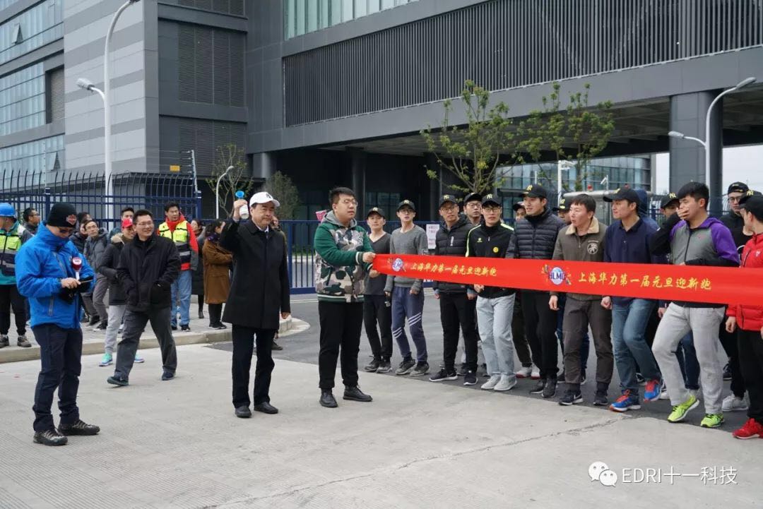 8時15分,迎新跑活動正式開始,上海華力黨委書記、董事長張素心,十一科技黨委書記、董事長趙振元,以及其他參建單位的領導,分別為健兒們發起跑指令。槍聲一響,健兒們如離弦的箭一般沖向終點,用奔跑的方式來迎接2019,高漲的熱情點燃了跑道。