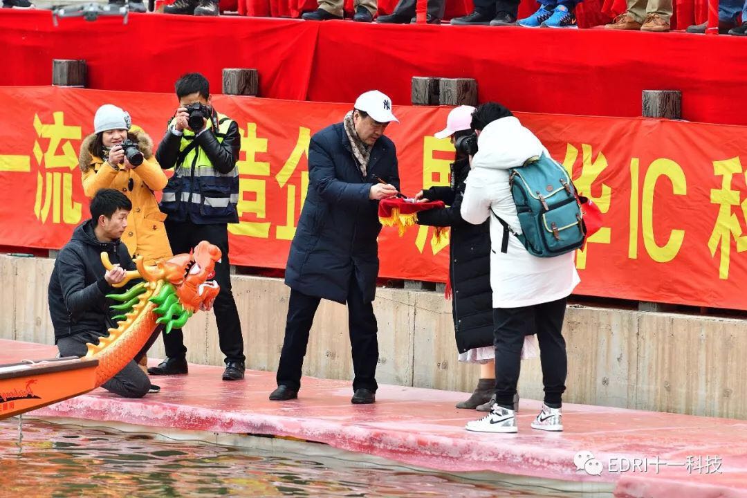 同時龍舟賽預賽也如火如荼的進行。上海華力、十一科技、上海建工等共 8 只隊伍參加了本次龍舟賽。十一科技龍舟隊順利進入決賽。隨后,決賽前的龍舟點睛儀式正式舉行。張素心、趙振元同志分別親自為華力隊、十一科技龍舟隊的戰船點睛。大家激動不已,斗志昂揚。