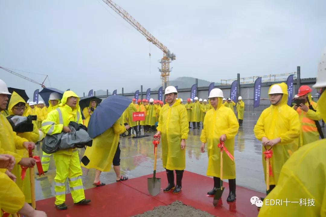 2019年6月19日上午,十一科技總承包的中芯紹興MEMS和功率器件芯片制造及封裝測試生產基地項目隆重舉行主體工程封頂儀式。紹興市委書記馬衛光、紹興市市委秘書長陸維、紹興市副市長孫哲君、中芯國際CFO高永崗、中芯紹興董事長丁國興、中芯紹興總經理趙奇、十一科技董事長、黨委書記趙振元、高級副院長白焰等領導出席儀式。中芯國際CFO高永崗、中芯紹興總經理趙奇先后致辭,對十一科技、各參建方及紹興市各級市政領導對項目的大力支持和辛勤付出表示感謝。在儀式上,趙振元與馬衛光書記、高永崗CFO、趙奇總經理等領導親切交談,并與出席儀式的領導共同揮鏟為主體廠房的結構封頂完成最后一方混凝土的澆筑。