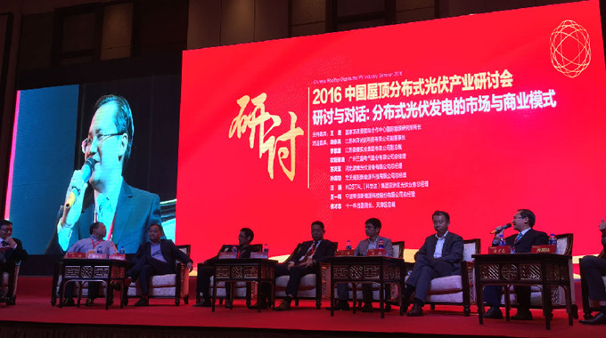 “China Distributed PV Roof Union” launched at 2:00pm. Supported by national policy, China Distributed PV Roof ushered in an important development opportunities. To promote the healthy and efficient development of Chinese rooftop PV, 33 corporations’ leaders including EDRI Deputy President Yu Caizhi, Trina Solar, CHINT New Energy, Icahn, and PVP365, jointly launched the alliance on the stage. Later the third Pujiang Dialogue discussed around “Market and Business Model of Distributed PV Power Generation”. Deputy President Yu Caizhi, Jiangsu LinyangGuYongliang, Changzhou Trina Solar Niu Yong, Guangzhou SAJ OuyangJiagan, HeibeiNuowei PV Equipment Su Tianjun, Zhongtianyaoyang New Energy Sun Songjie, Ningbo Ginlong Wang Yiming, and other industrial elites came up their opinions. Meanwhile, Mr. Yu Caizhi delivered an excellent speech about distributed PV roof safety in design and construction, as well as waterproof and other network issues, winning warm applause from audiences.